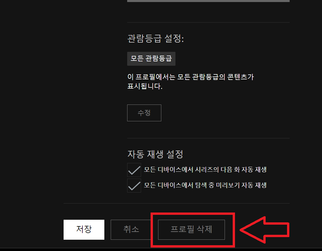 프로필 삭제를 원하신다면 프로필 삭제 버튼을 눌러줍니다.