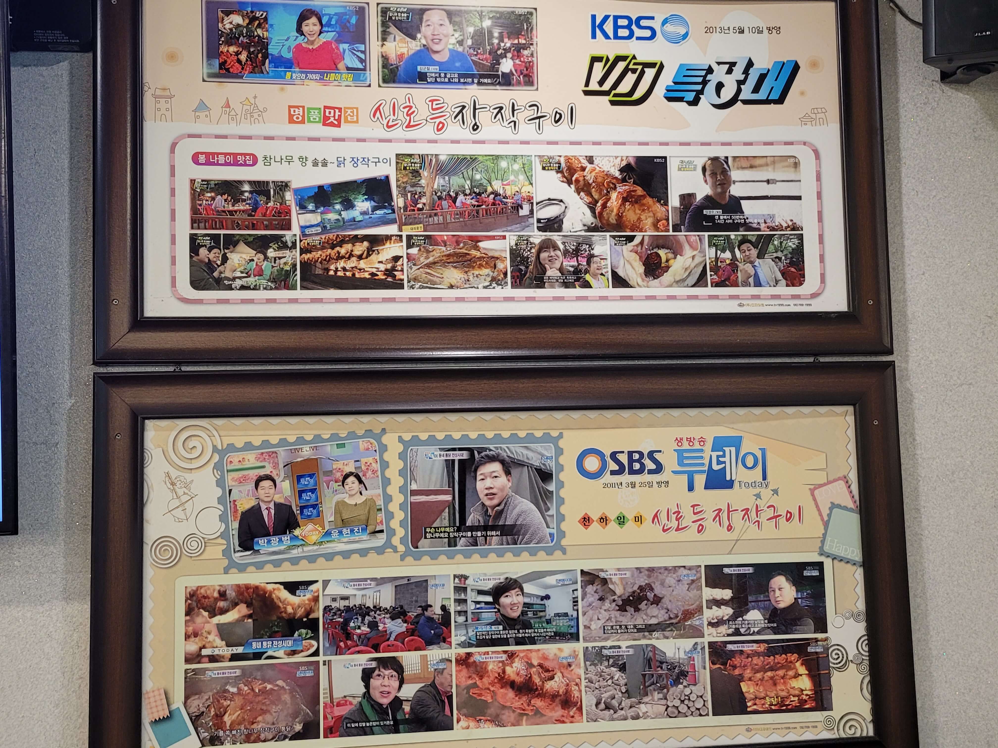 가장 많이 주문하는 메뉴는 바로 닭장작구이 입니다. 국내산 닭을 사용하고 있고 한마리에 18,000원 입니다. 그 외 골뱅이, 불닭발도 판매합니다. 메뉴 구성이 적은 집이 찐 맛집인데 여기가 일산맛집 인 것 같습니다. 닭꼬치와 막국수, 잔치국수도 판매합니다. 많은 방송국에서 방문했다는 증거사진도 액자로 걸려있습니다.
