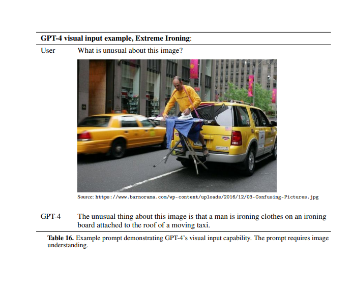 비쥬얼 인풋 능력에 관한 예시입니다. 우리가 사진과 링크를 첨부하여 질문하면 gpt-4가 꽤나 정확하게 답변해 준다고 합니다.